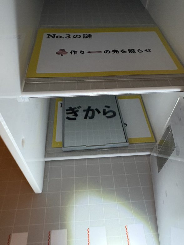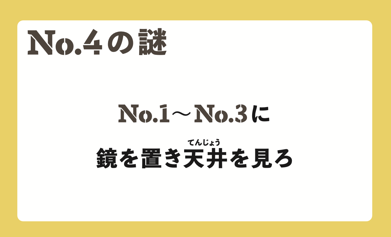 鏡を使ってNo.1~No.3の天井を見ると「いきどまりみぎから」となる。