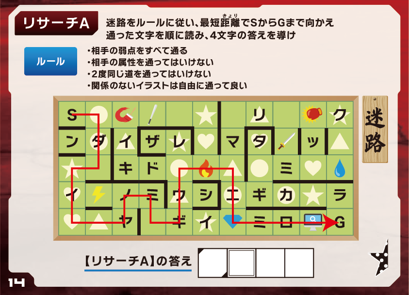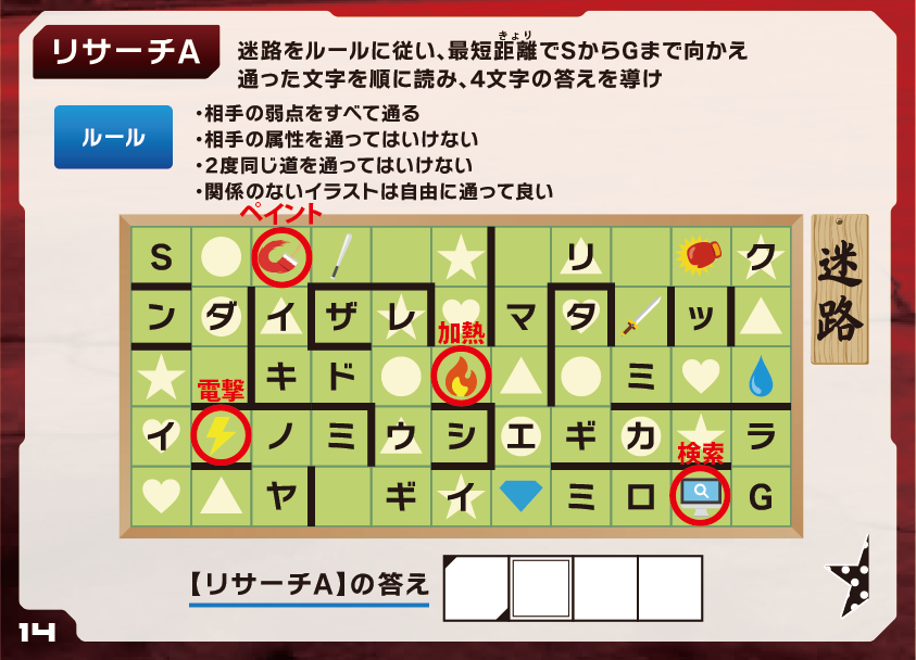 ルール通りにSからGまで進んだら、通った文字を順に読み、現れる指示に従いましょう。