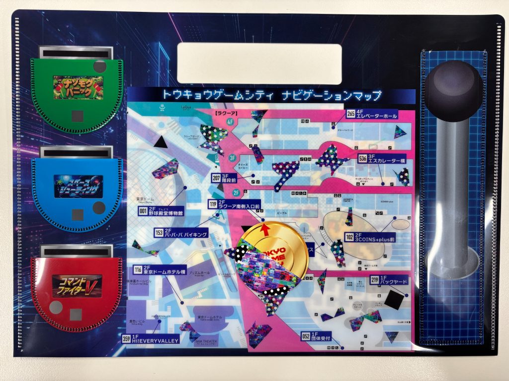 コインの「TOKYO GAME CITY」と書かれた面に、砂時計のような形の一部分があるので、この面をナビゲーションマップに重ねて、指定された形を作りましょう。