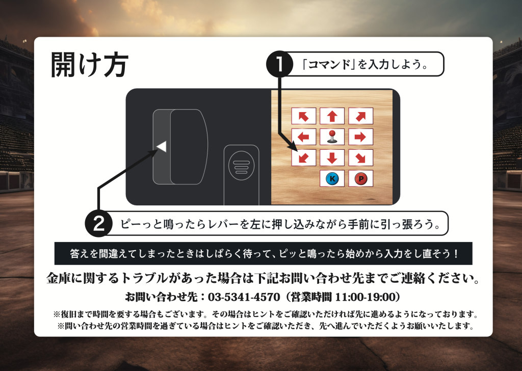 その場所に起動パスワードがあるので、書かれている文字を入力することで次のゲームが始まります。