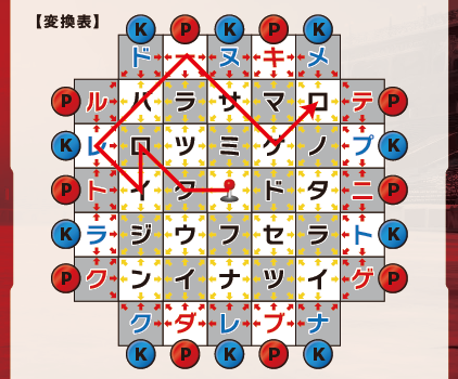 赤いレバーとは攻略本の19ページに載っている、変換表のものです。