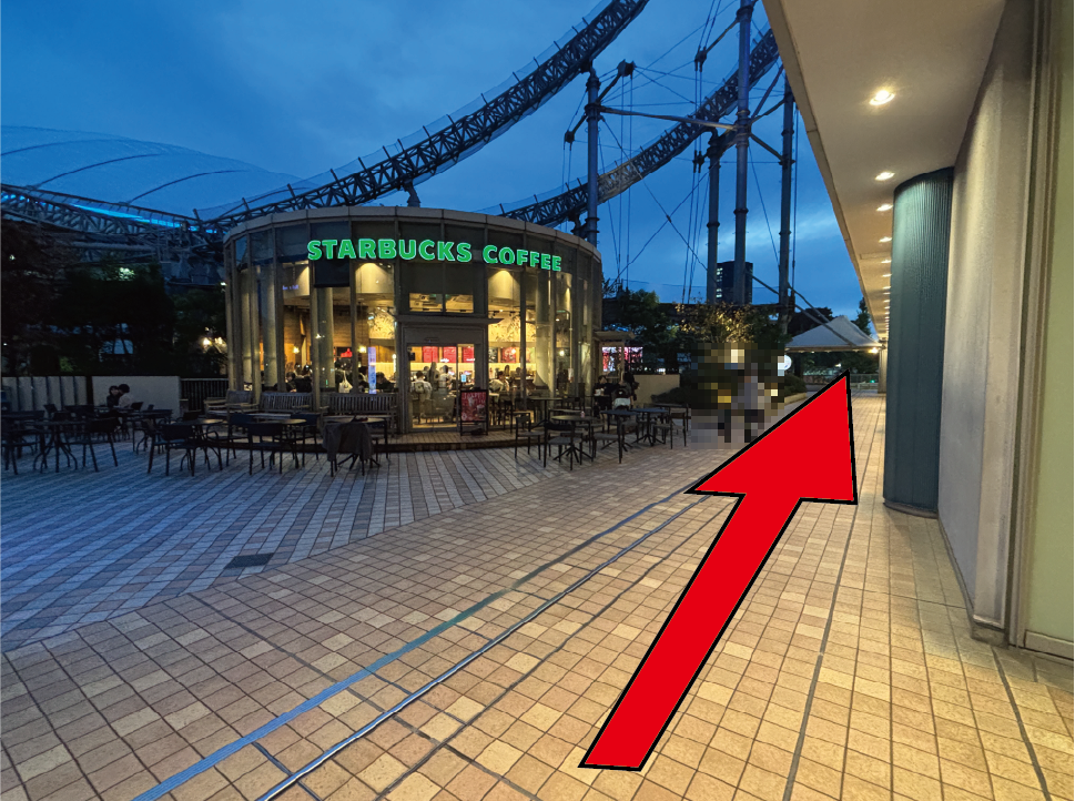 まず、矢印の通りに進み、先ほど通ってきた道をもどりましょう。