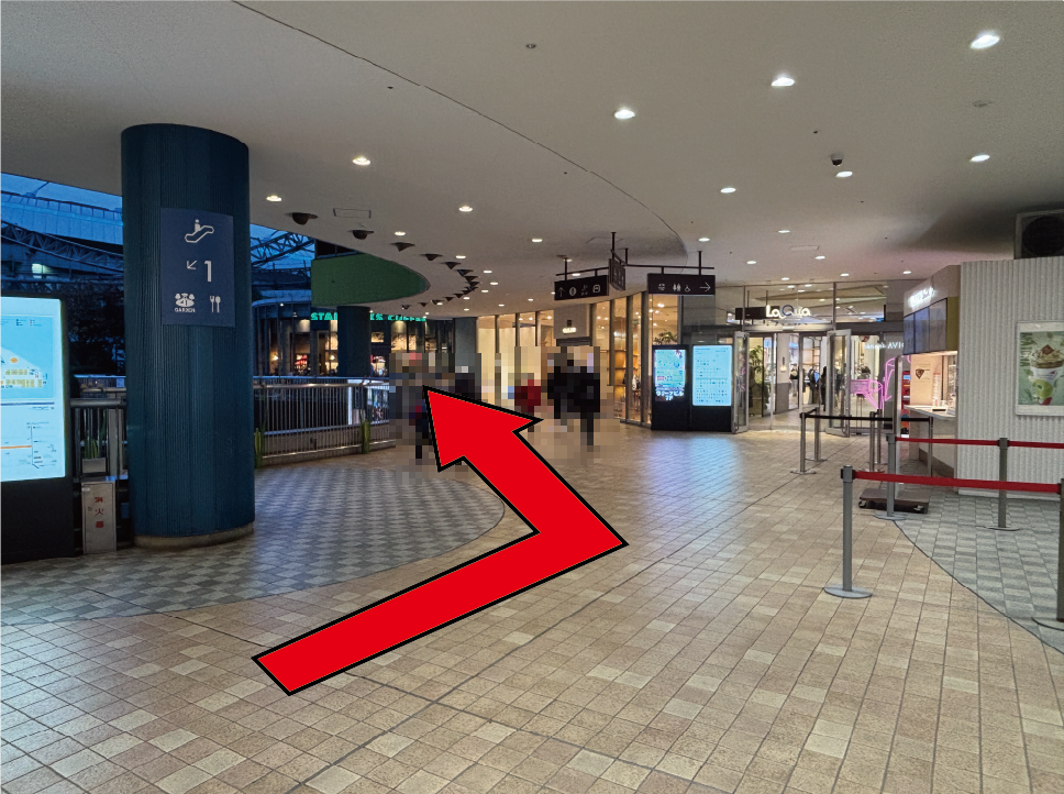 スターバックスコーヒーの前にある通路へ進んでください。