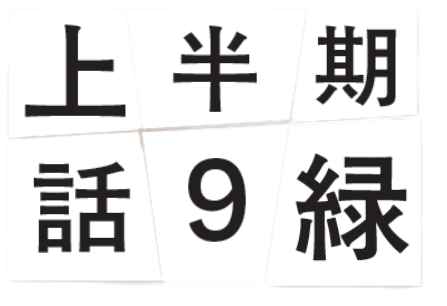 これを使い、「6」の向きに注意して長方形の穴を埋めてみよう。正しく並ぶと、上段に「上 半 期」、下段に「話 9 緑」が現れ、これも一つの謎として解くことができる。