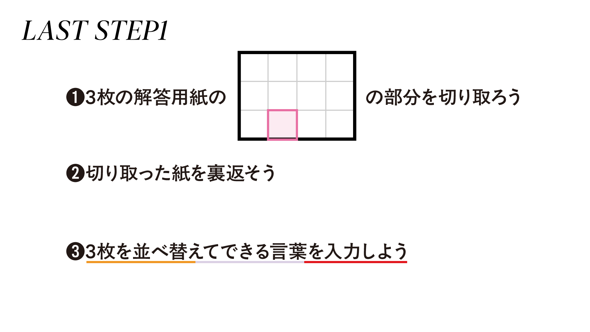 手順に従って解答用紙の一部を切り取り、裏返してみよう。