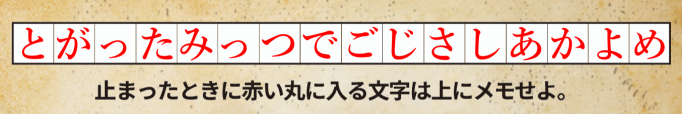 Sからゴールまで進むと、「とがったみっつでごじさしあかよめ」となる。