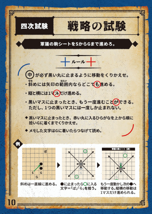 黒いマスに止まったときは赤い丸に入った文字をメモしよう。