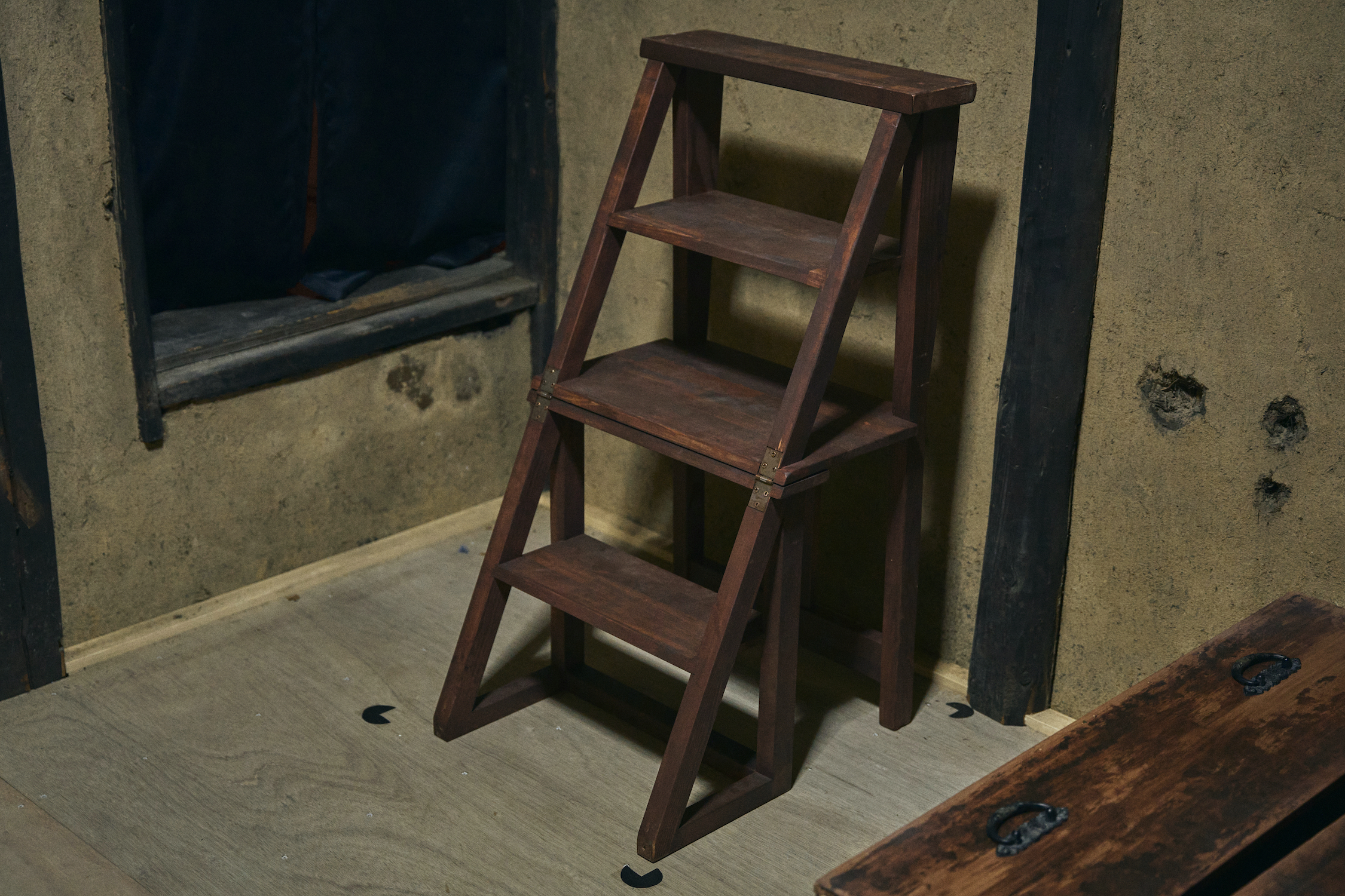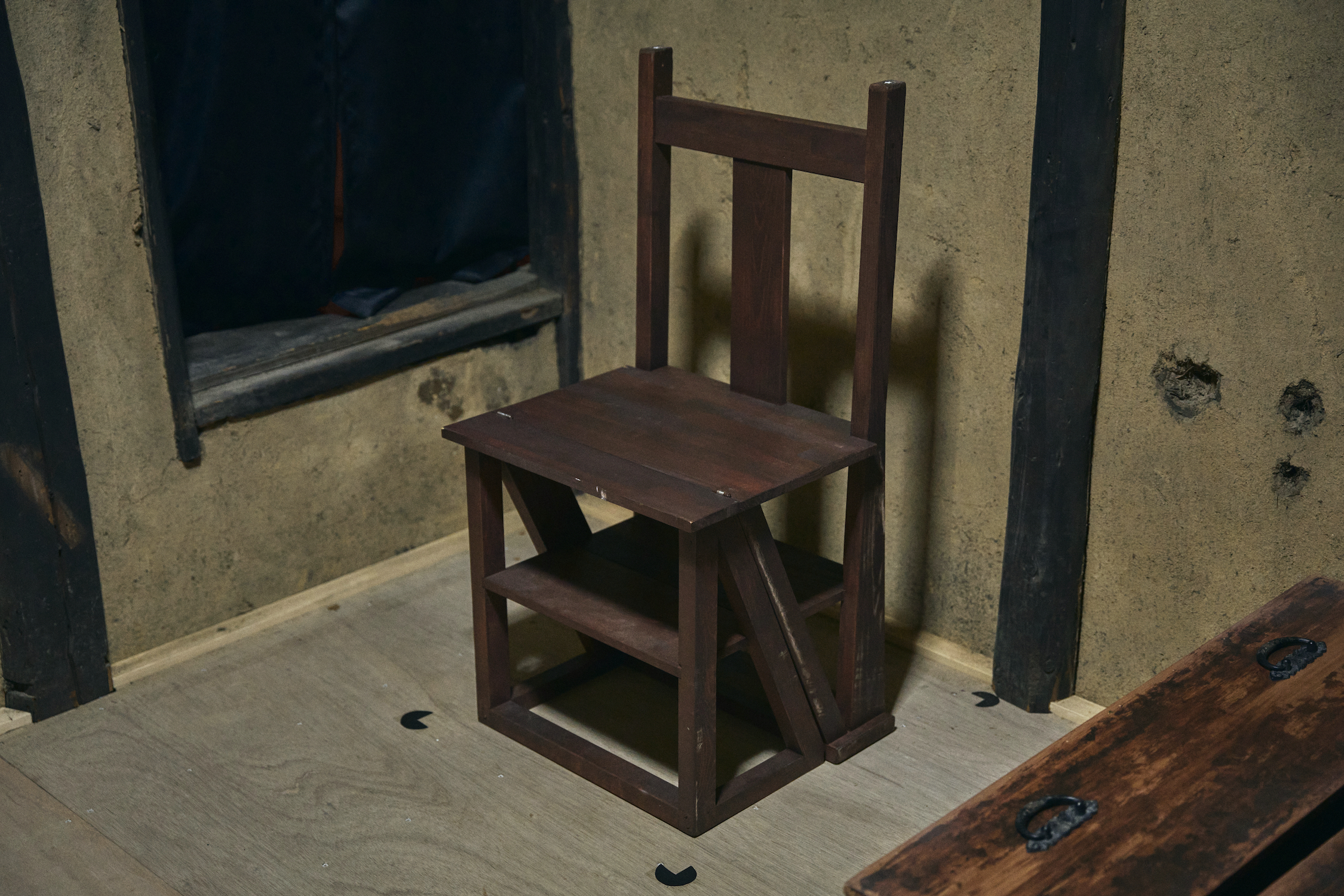 あなたたちは再び謎を解き始めた。白骨化遺体の傍らにあった紙に描かれたマークが、暗室にあった椅子に貼られたマークと同じだと気づき、マークが合わさるように椅子を指定の場所に置くと、椅子は形を変えハシゴとなった。