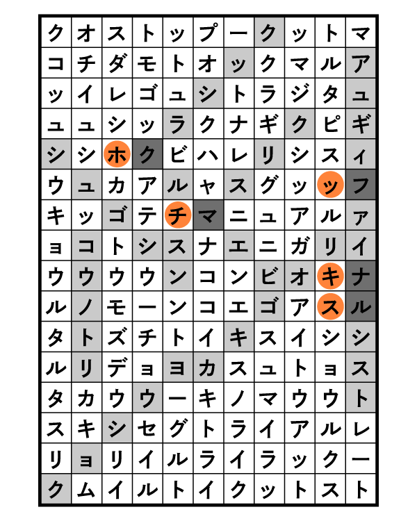 黒い枠にはカタカナに変換する前の単語が入るが、ここで「問題」と書かれていることに注目しよう。これまでの問題には何が使われていただろうか。