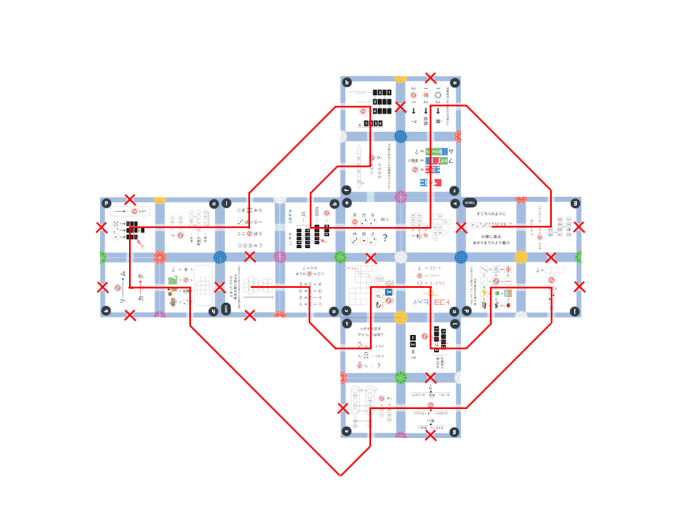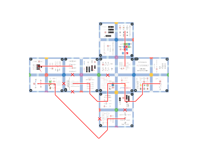 ふりだしとあがり以外の謎には入口と出口が1つずつ存在するので、経路が2つしかない謎用紙の経路は必ず通過します。これらを踏まえて使用する経路と使用しない経路を絞り込んでいきましょう。