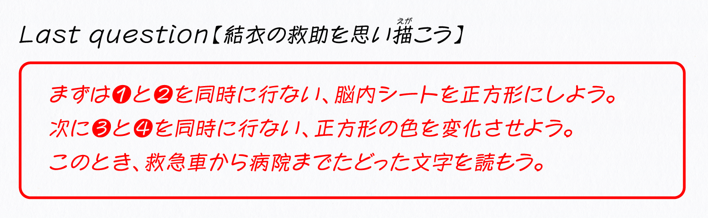 脳内シートが「はっけん」という答えを導いた状態から始めて、指示を実行していこう。