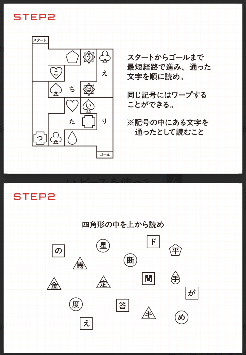 STEP2の封筒を開いて、謎を解け。