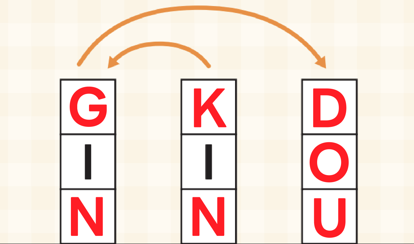 ローマ字で「KIN」「GIN」「DOU」を埋めましょう。