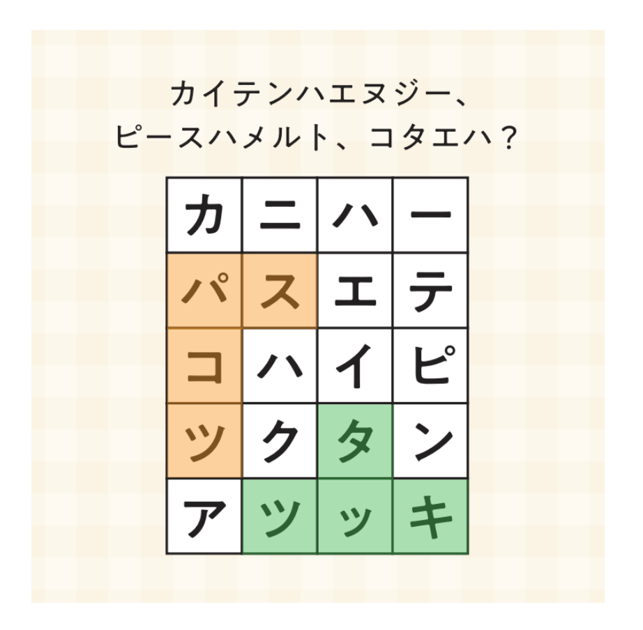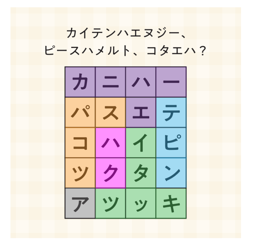 同じ数字の四角に同じ文字を当てはめることで右側中央の文章が「サンカクノシタミヨ」だとわかります。