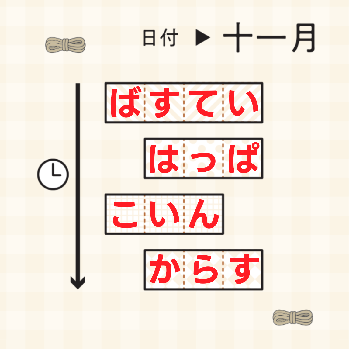 これまでと同じように「11月4日のおもいで」の場面をイラストをつなげて再現しましょう。