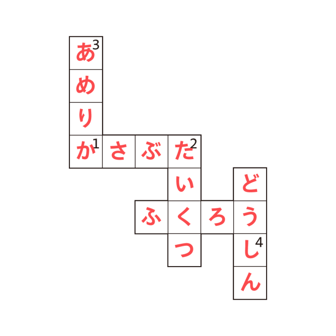 4つの答えが揃ったら五十音順に上から埋めよう。