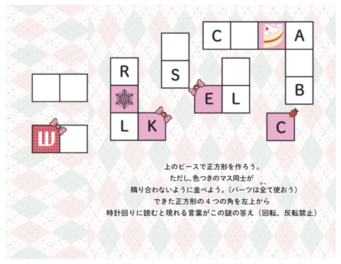 ー【時計】のかけらの上に【ケーキ】のかけらを重ねよう。向きは変えないようにしようー