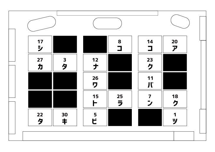 数字が書いてある枠内の数字を変換していくと、「アナタノラッキーナンバーナナツ」となる。