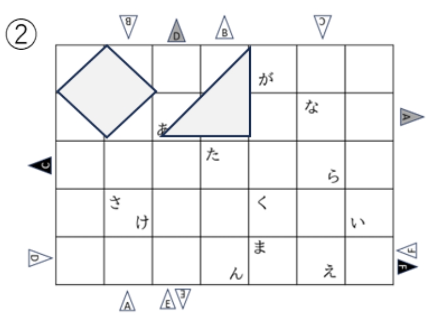 A~Fがどのような軌道になったのかを考えることで、どこに図形が置かれているかを絞り込んでいく。