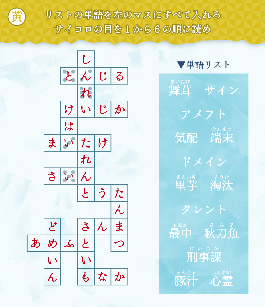 氷の箱にある4枚の謎を解き、解答用紙に答えを埋め、キーワードを入力しよう。
