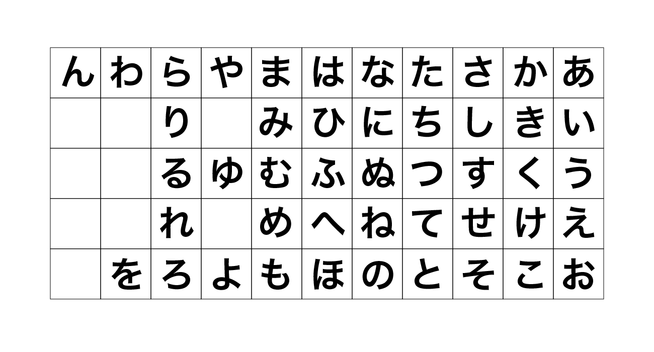 このような並びは五十音表の上で確認することができます。