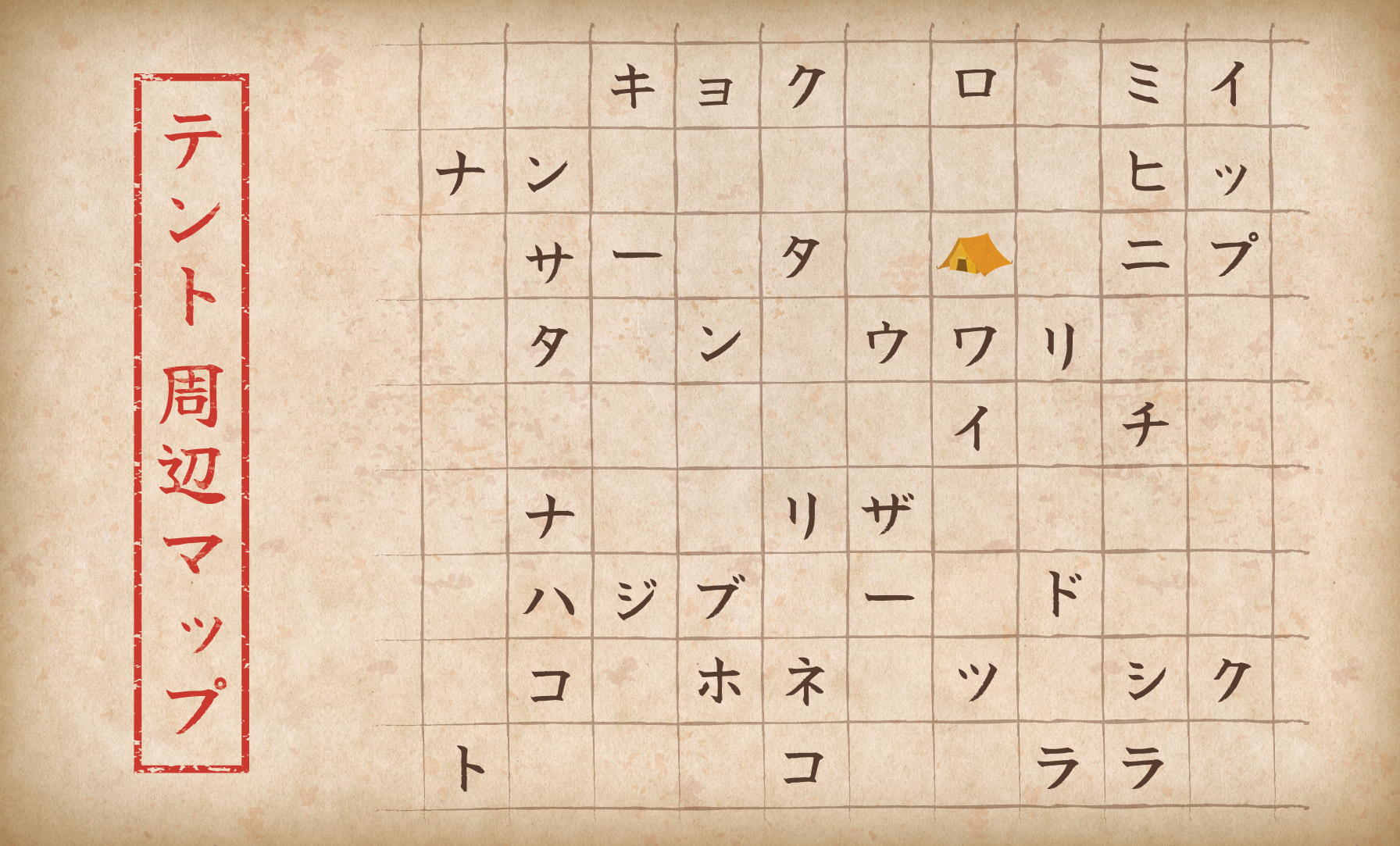 拾い上げた2枚目の紙には、1枚目と同じ筆跡で、手書きの「テント周辺マップ」がかかれていた。