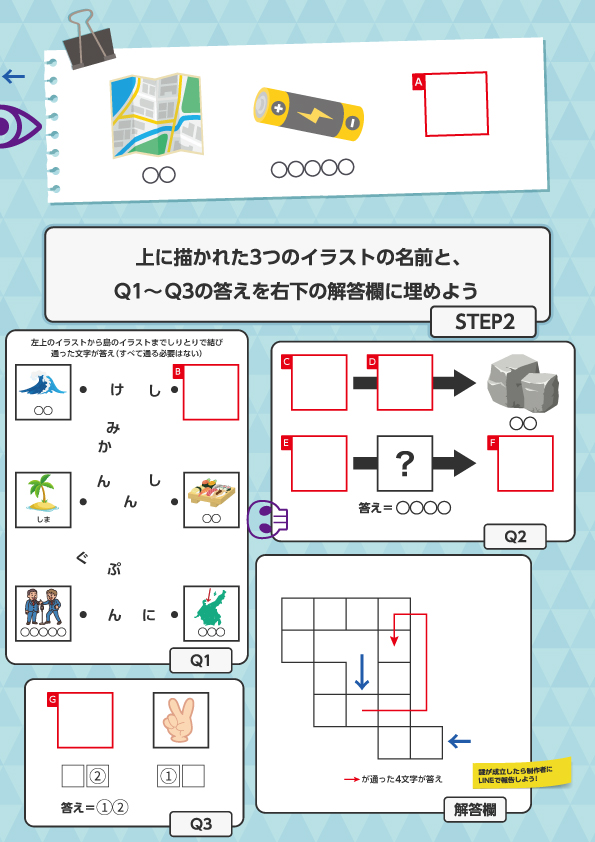 よって、Gに「パー」を貼ってQ3の答えを「かけ」にし、Aに「まき」を貼ることで、SREP2の答えが「しんかん」になります。