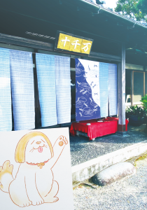 しいたけは謎3の紙の裏面に描いてあります。しいたけのイラストと、旅館の入り口の上にある看板がどちらも写るように写真を撮りましょう。