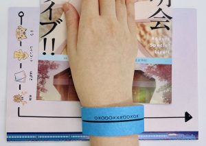 あなたの手につけたリストバンドに砂時計があります。メモリアルブックの裏表紙にある砂時計と合わせましょう。