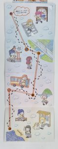 ⚪︎と×が書かれた矢印がイラストを通る謎は、謎3のBにもありました。この謎と同じ法則で、⚪︎の位置の文字を読むと、「トレインはがせ」と読むことができます。