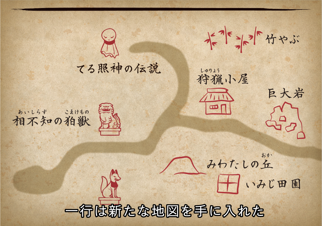 老婆によると、ツチノコの居場所を示す地図は全部で4枚あり、これらすべてを集めることでツチノコに出会えると言われているそうだ。