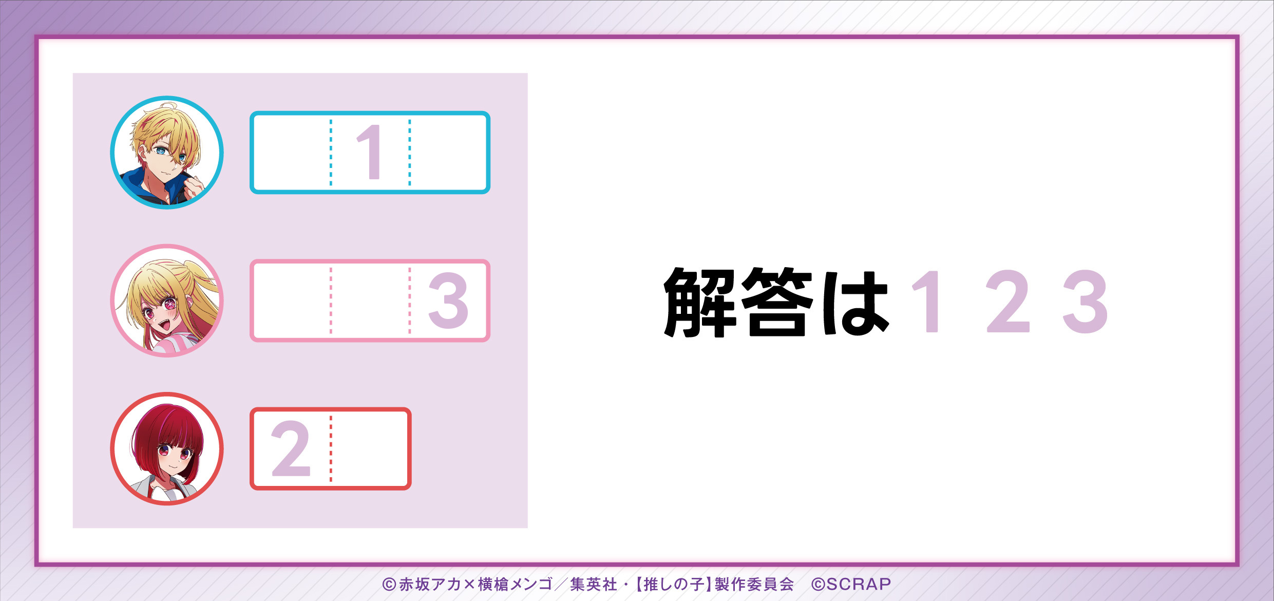左の赤い枠は「有馬かな編」の謎の解答欄に、右のピンクの枠は「アクア&ルビー編」の謎の解答欄の一部に一致しています。