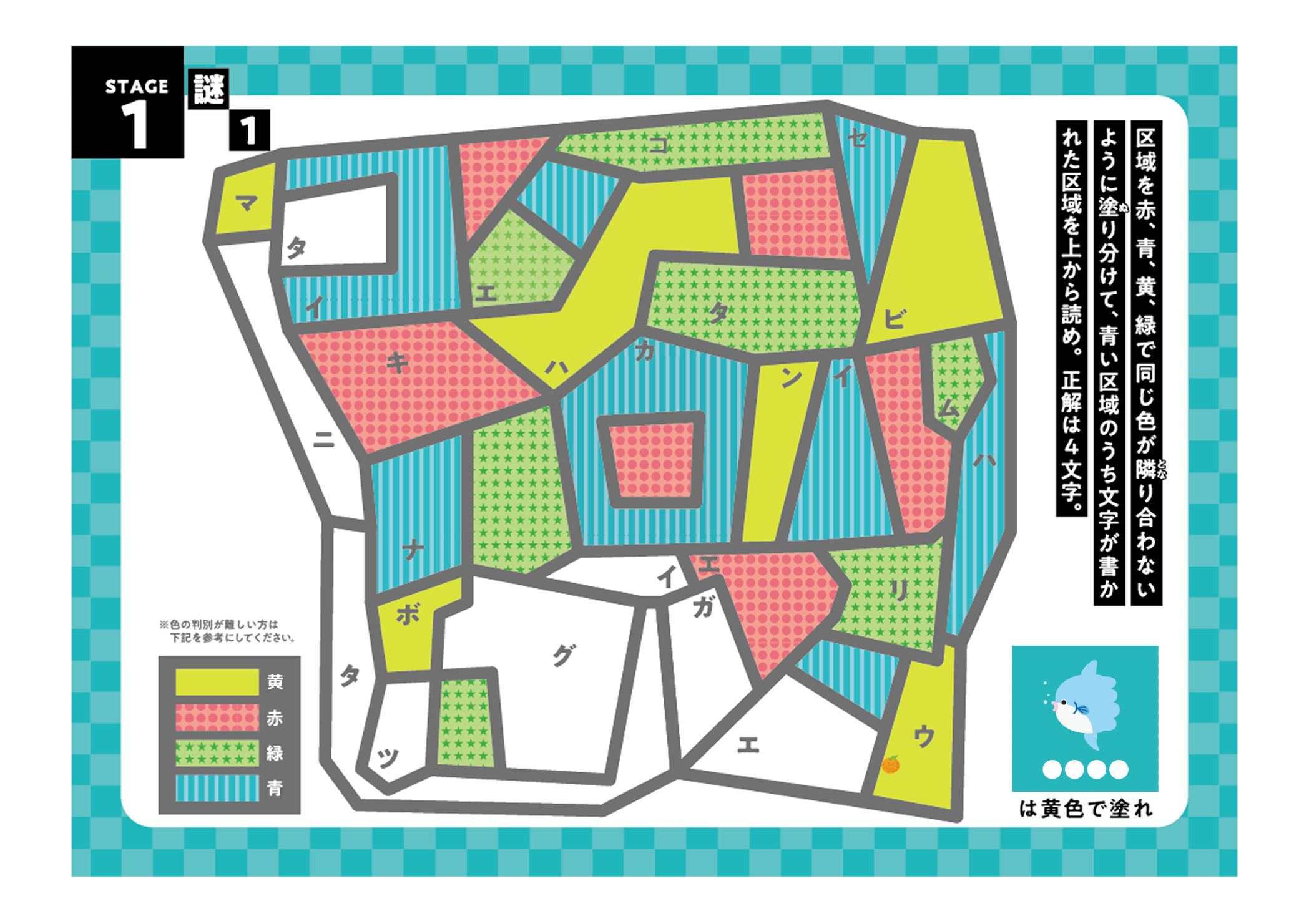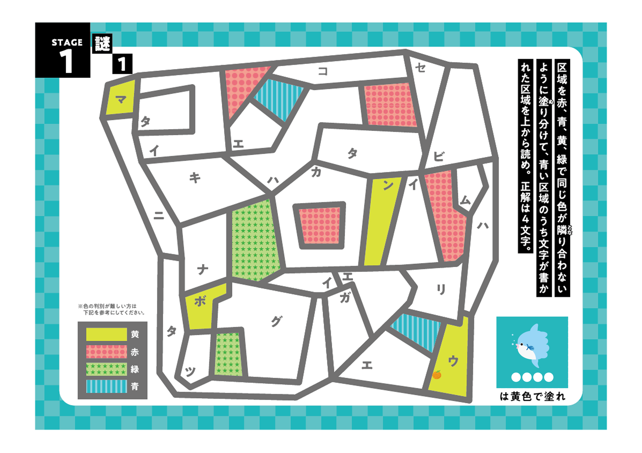 色鉛筆(いろえんぴつ)がない場合黄色は「Y」、赤は「R」青は「B」緑は「G」というようにアルファベットを書き込んでいくと解きやすいだろう。