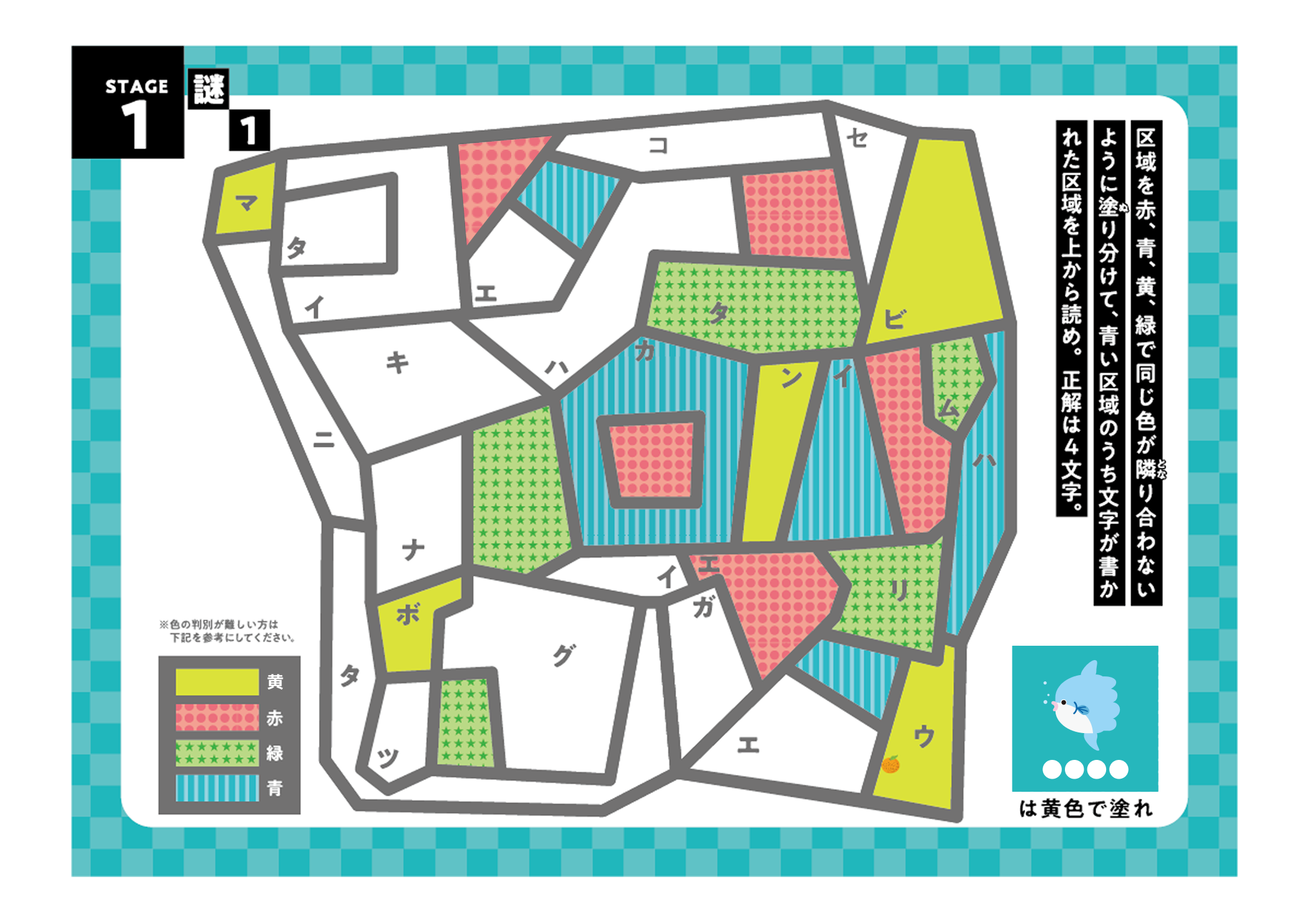 すべて塗り分けるまでの途中経過はこの通りだ。ここから先は自分で考えてみよう。