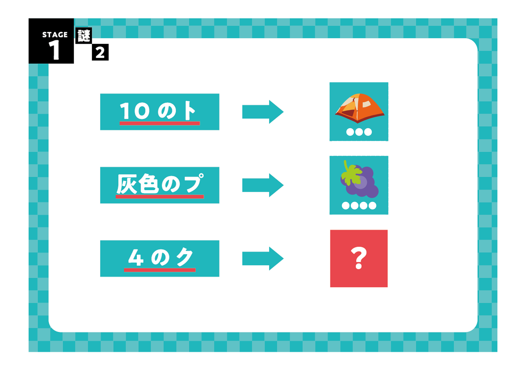 「テン」ト、「グレー」プ…と言葉を区切ると法則がわかりやすいだろう。