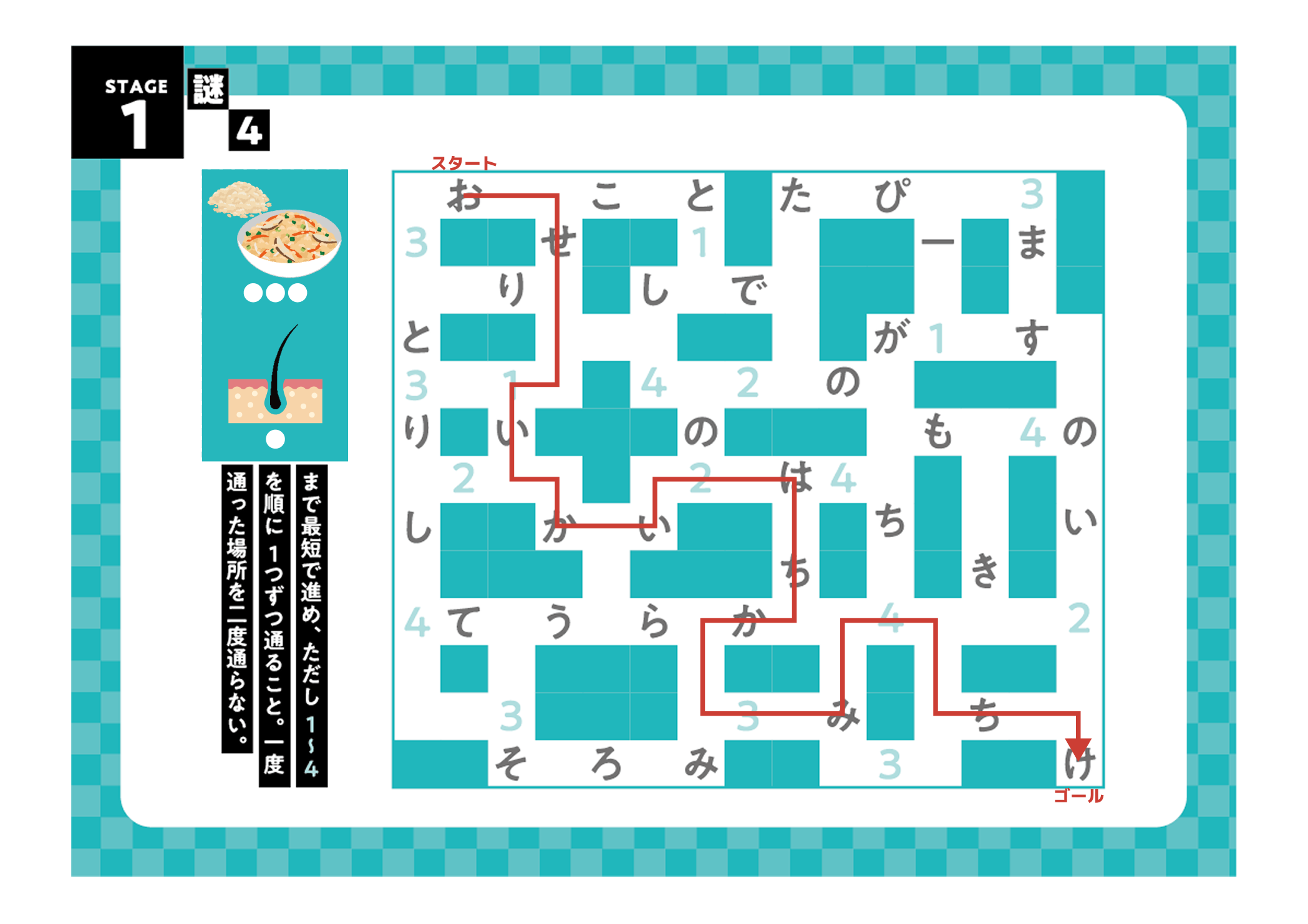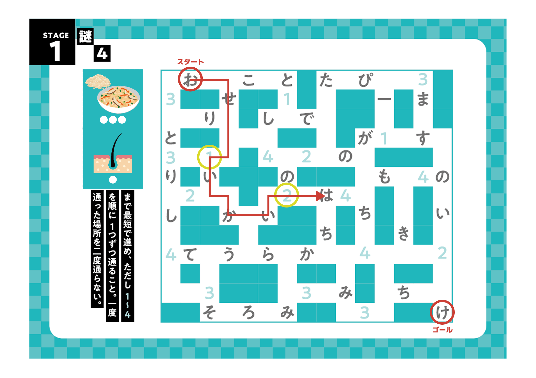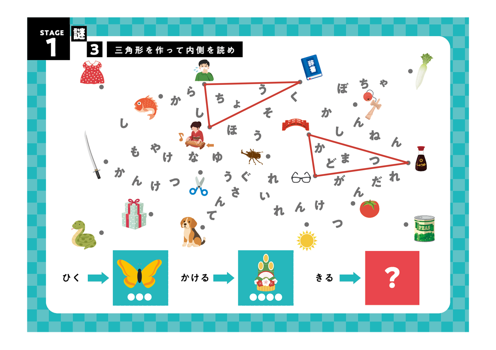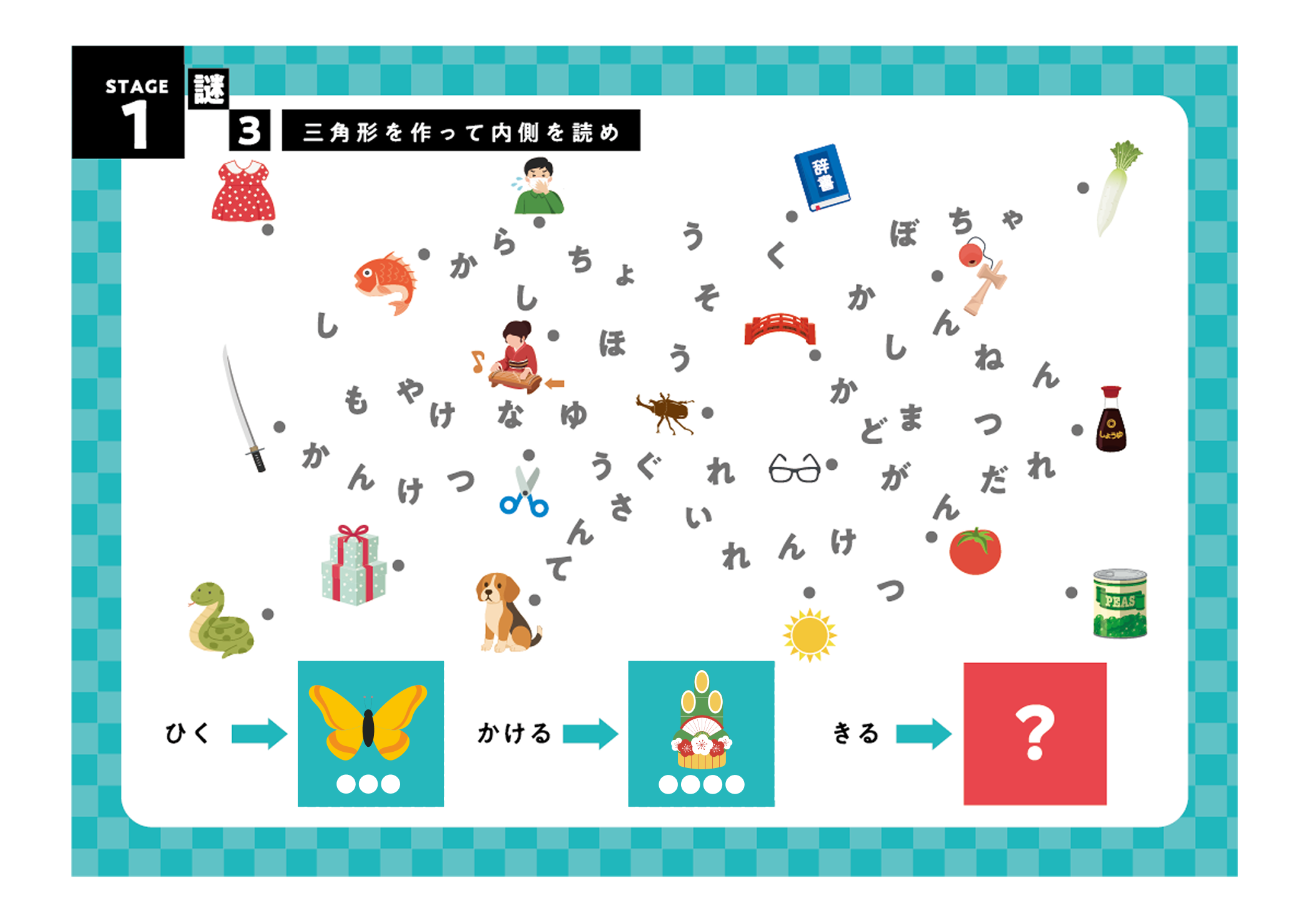 言葉のペアが完成したら「このステージの遊び方」の2番から読み進めて謎解きを再開しよう。