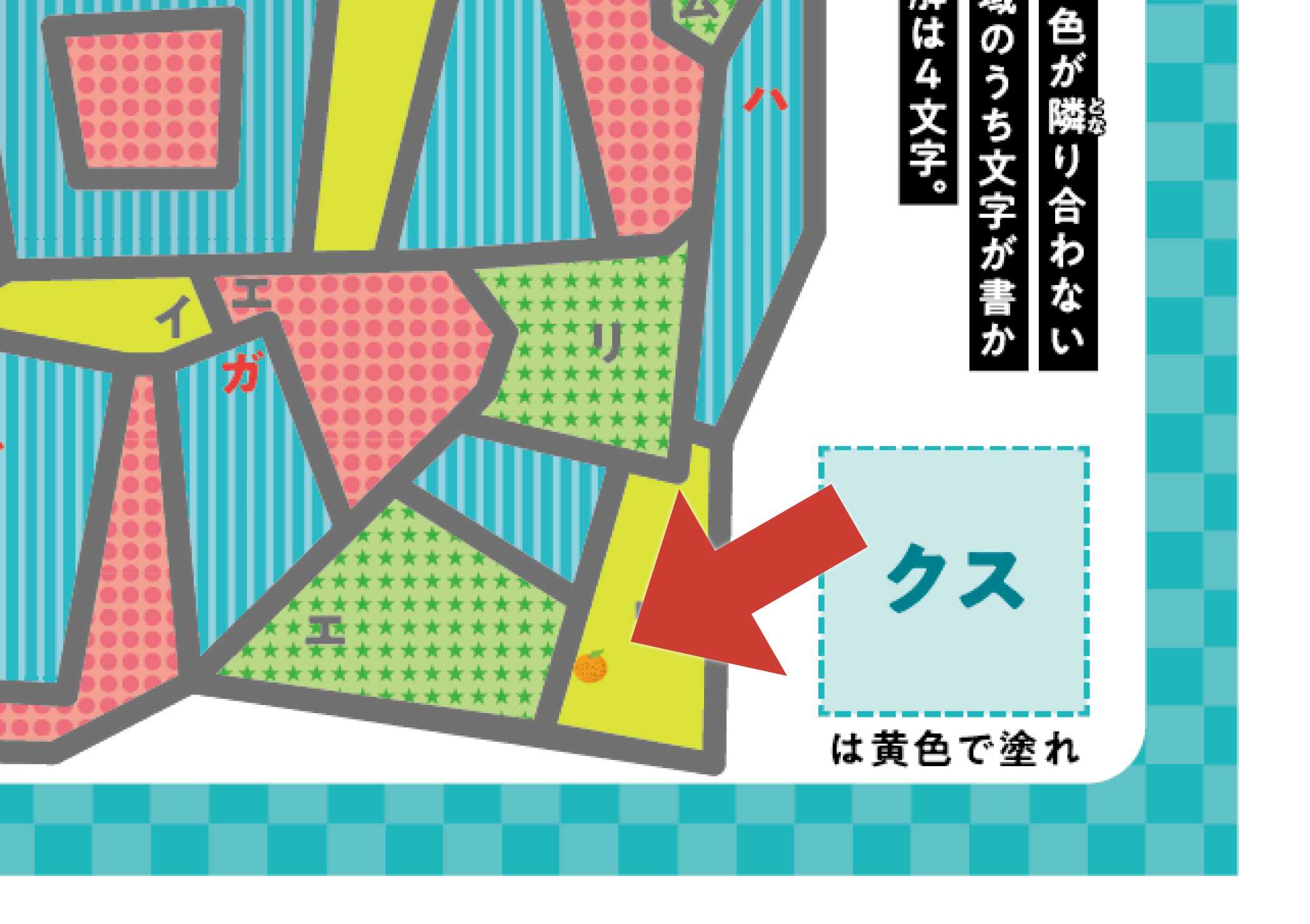 さらに右の方に注目すると「タ」「イ」「ハ」の区域が確定し、「ビ」「ム」の区域が確定する。こんな調子で反時計回りにどんどん確定させていこう。