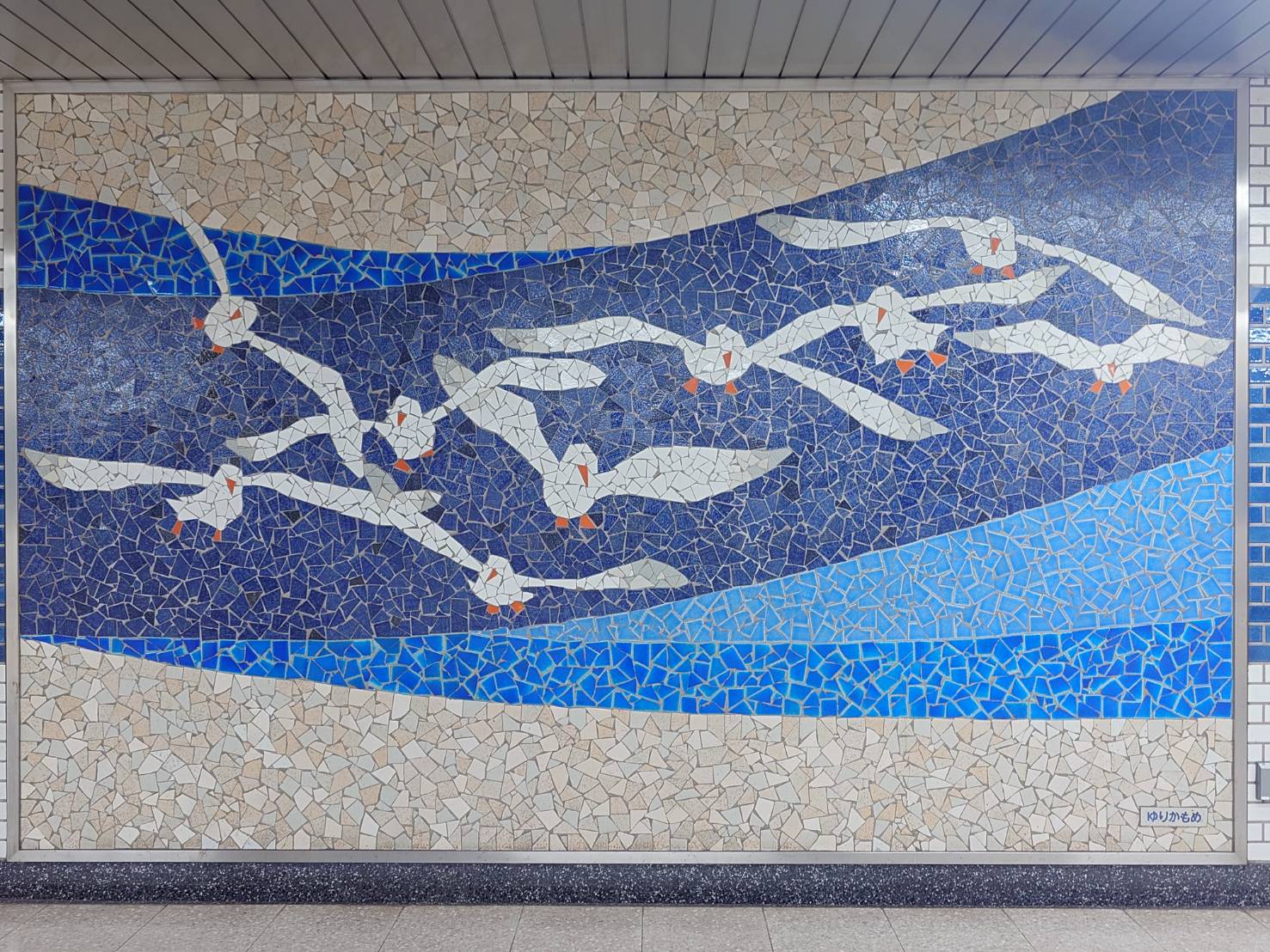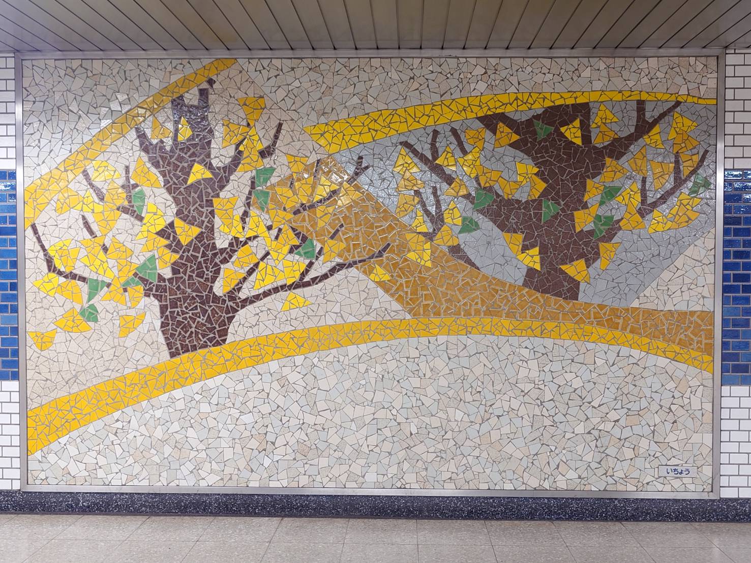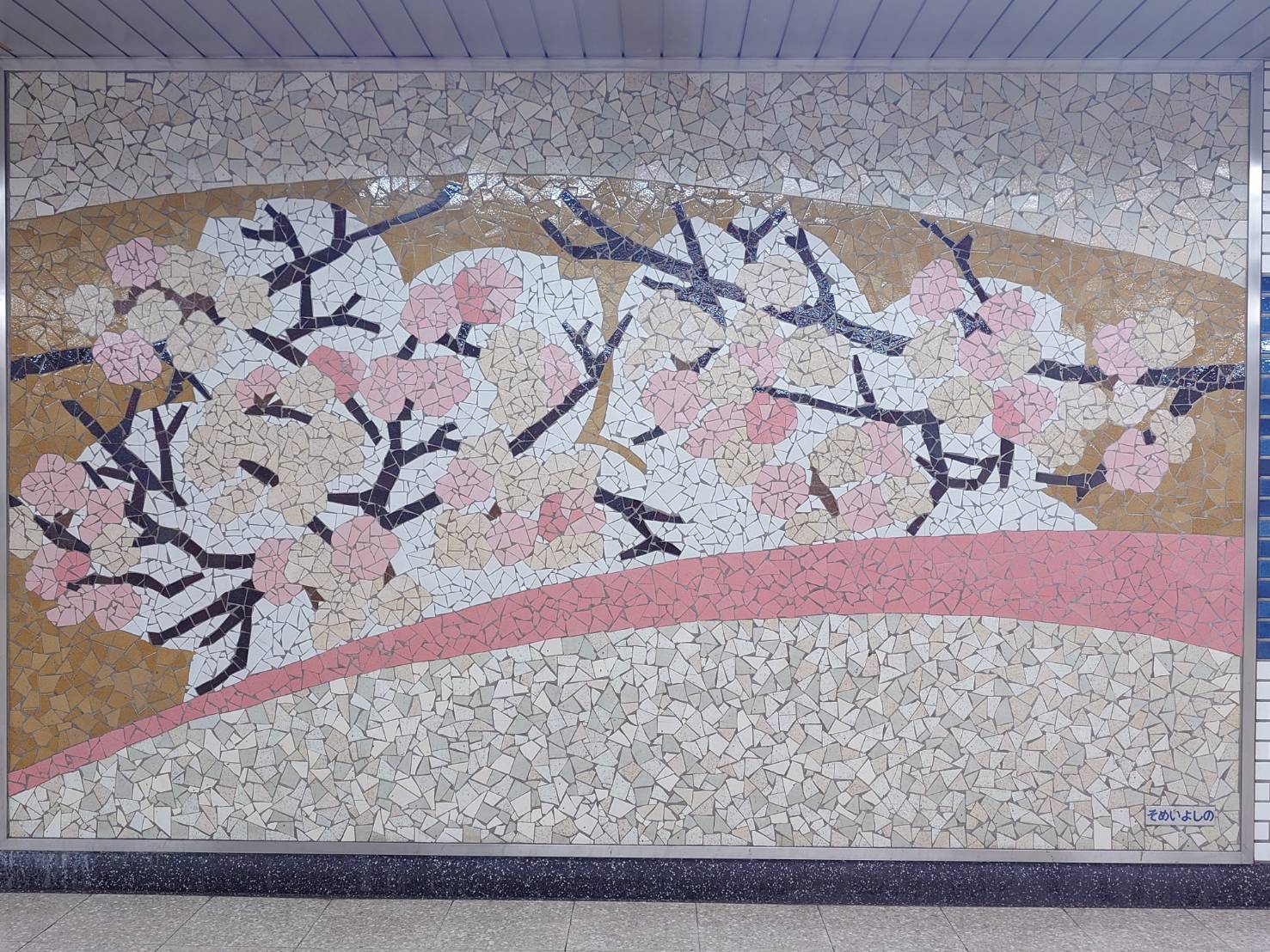 【「とえいろ」の先にある階段を上ったところにある3枚のモザイクアートの写真】