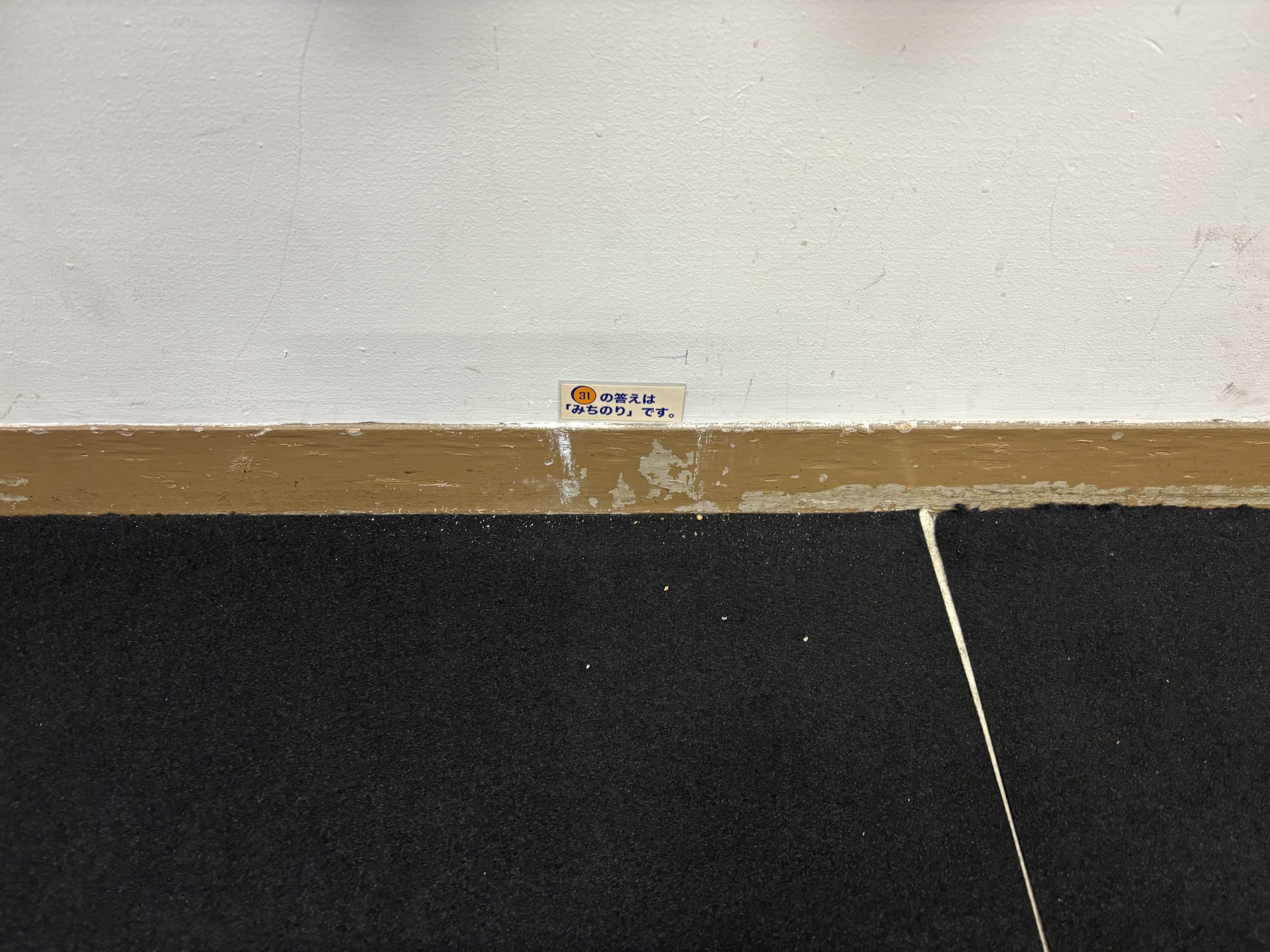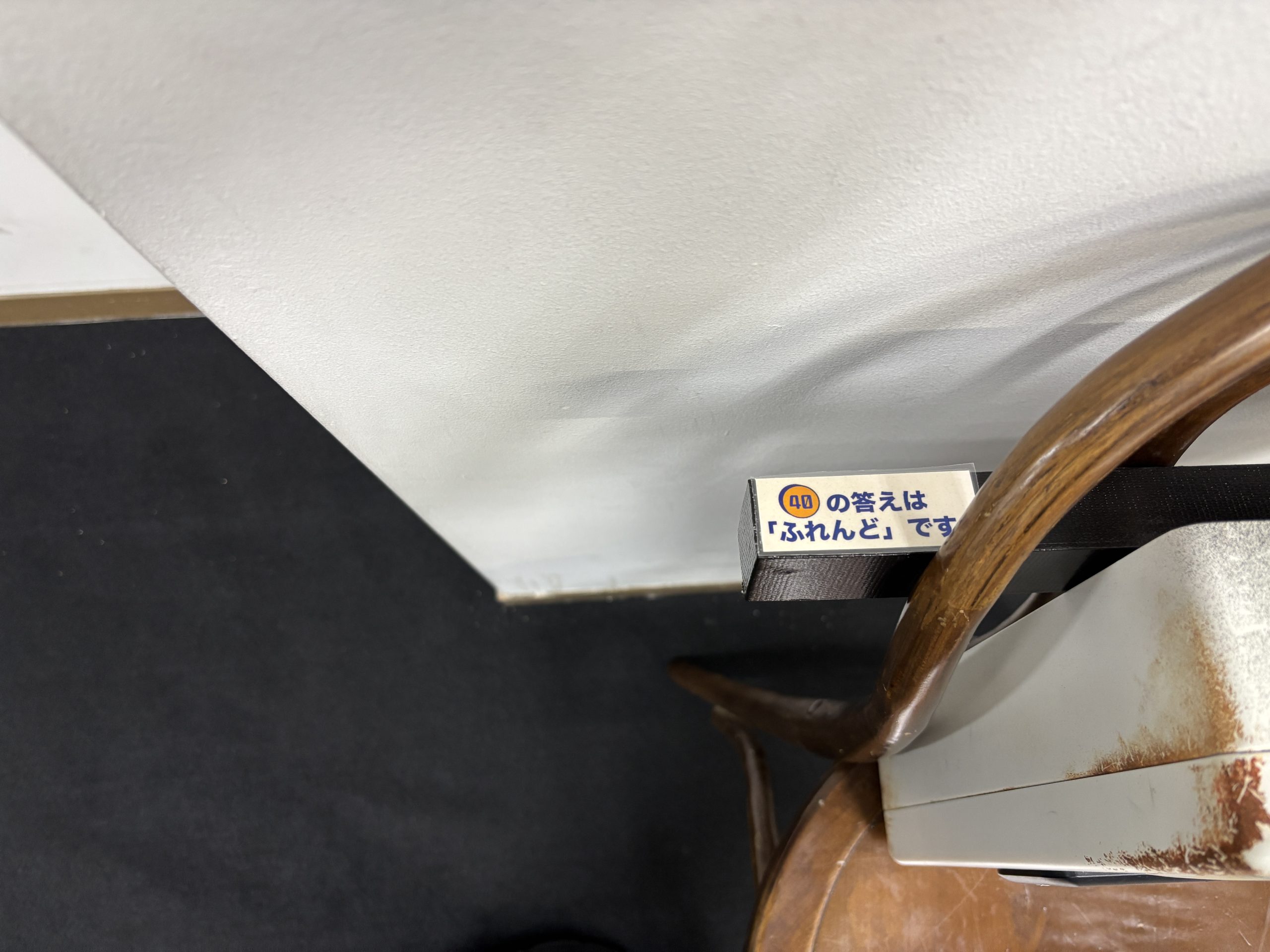 【名古屋店2025/10/31以降のご参加】ナゾだらけの部屋からの脱出 ナゾ解きパート探索解説 問題10はこの位置にありました。 答えは「ちゃんす」です。 問題15はこの位置にありました。 答えは「ぎじゅつ」です。 問題25はこの位置にありました。 答えは「めいあん」です。 問題28はこの位置にありました。 答えは「れとろ」です。 問題31はこの位置にありました。 答えは「みちのり」です。 問題34はこの位置にありました。 答えは「きっく」です。 問題38はこの位置にありました。 答えは「けはい」です。 問題40はこの位置にありました。 答えは「ふれんど」です。 ナゾ解きパートの解説はこちら 脱出パート(ナゾ解きの小部屋)の解説はこちら