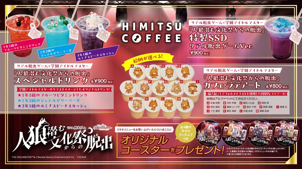 リアル脱出ゲーム×学園アイドルマスター『人狼潜む文化祭からの脱出』のコラボメニューの販売が決定!