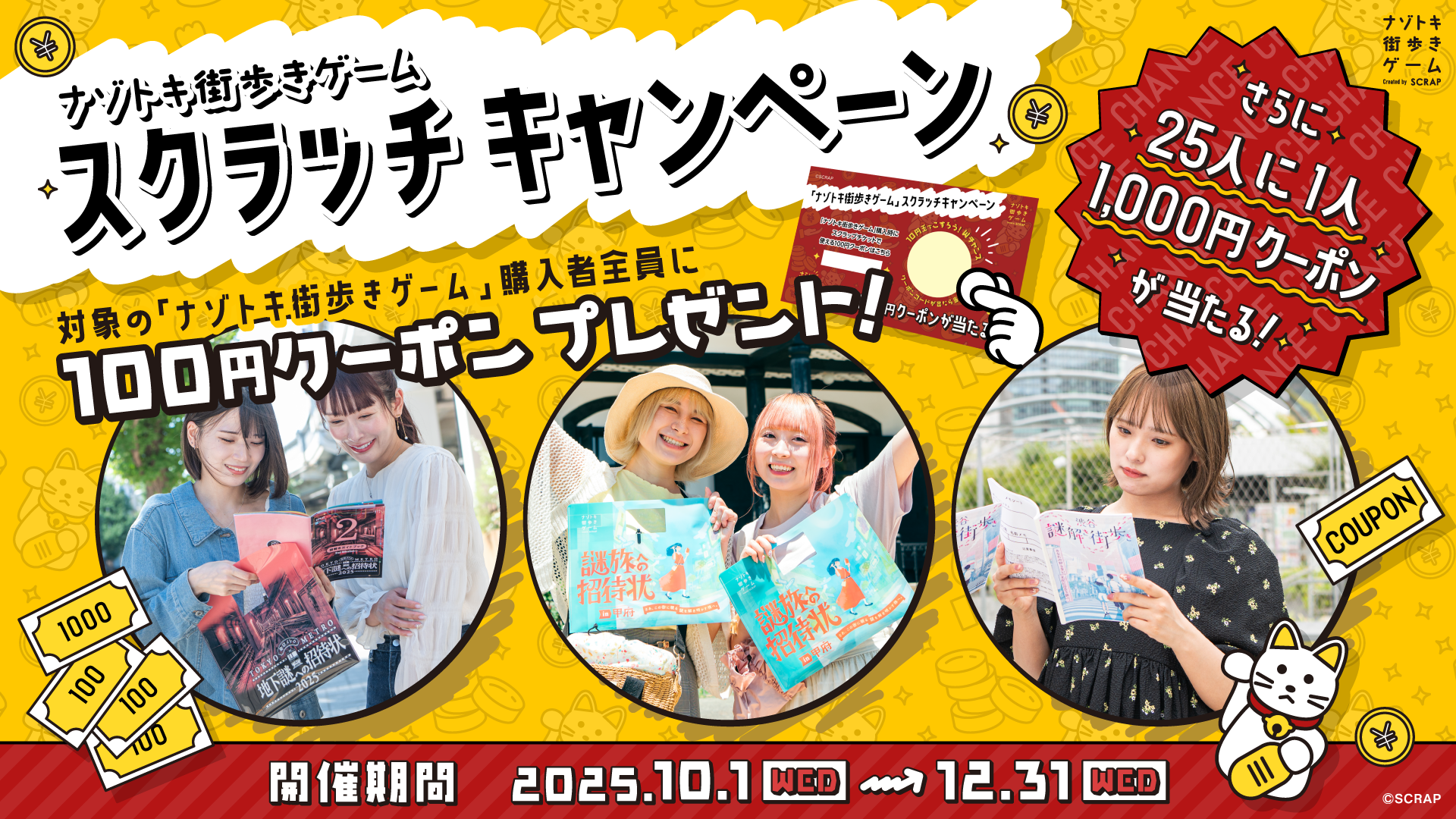 「ナゾトキ街歩きゲーム」購入者を対象にしたお得なキャンペーン「ナゾトキ街歩きゲーム スクラッチキャンペーン」の開催が決定しました。