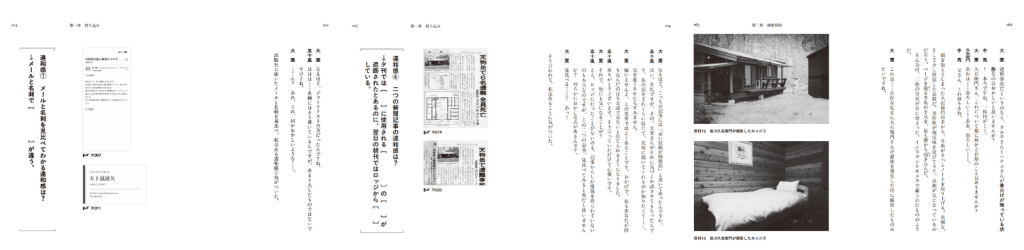 本書は「天狗岳怪死事件」の真相に迫る過程を、関係者の証言や各種資料をもとに、週刊誌記者がまとめた記録集となっており、最大の特徴は、取材の過程で記者が直面する数々の“違和感”を、穴埋め形式の設問として読者に提示している点。読者は「この空欄には何が入るのか」を考えながら読み進めることで、記者とともに調査を追体験していきます。謎解きの要素を明確な設問として組み込むことで、物語への没入感を一層高める構成となっています。