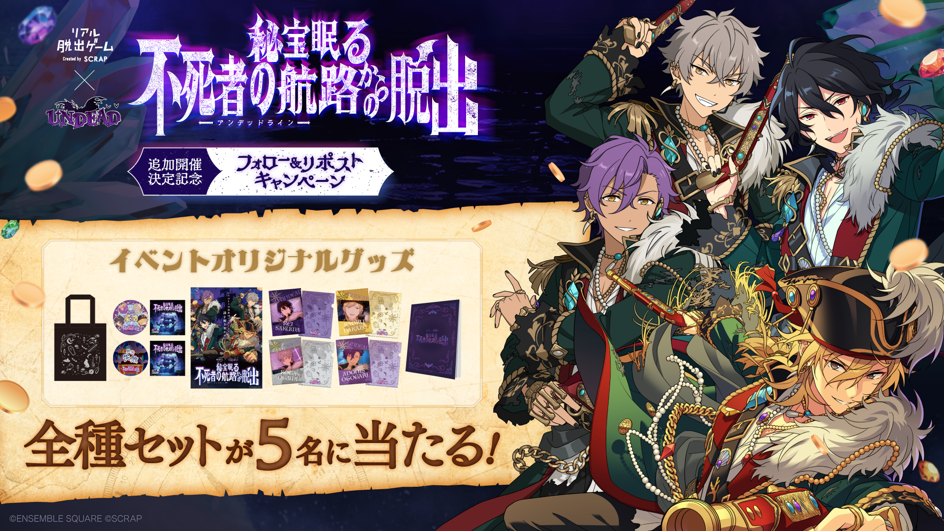抽選でリアル脱出ゲーム× UNDEAD『秘宝眠る不死者の航路(アンデッドライン)からの脱出 』イベントオリジナルグッズ全種セットを5名様にプレゼント