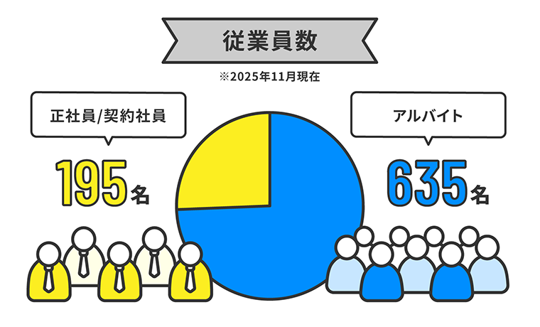 | 従業員数 | 731名(2025年2月1日現在 アルバイト552名含む) |
